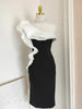 Diagonal Neck Patchwork Ruffles Folds Dress