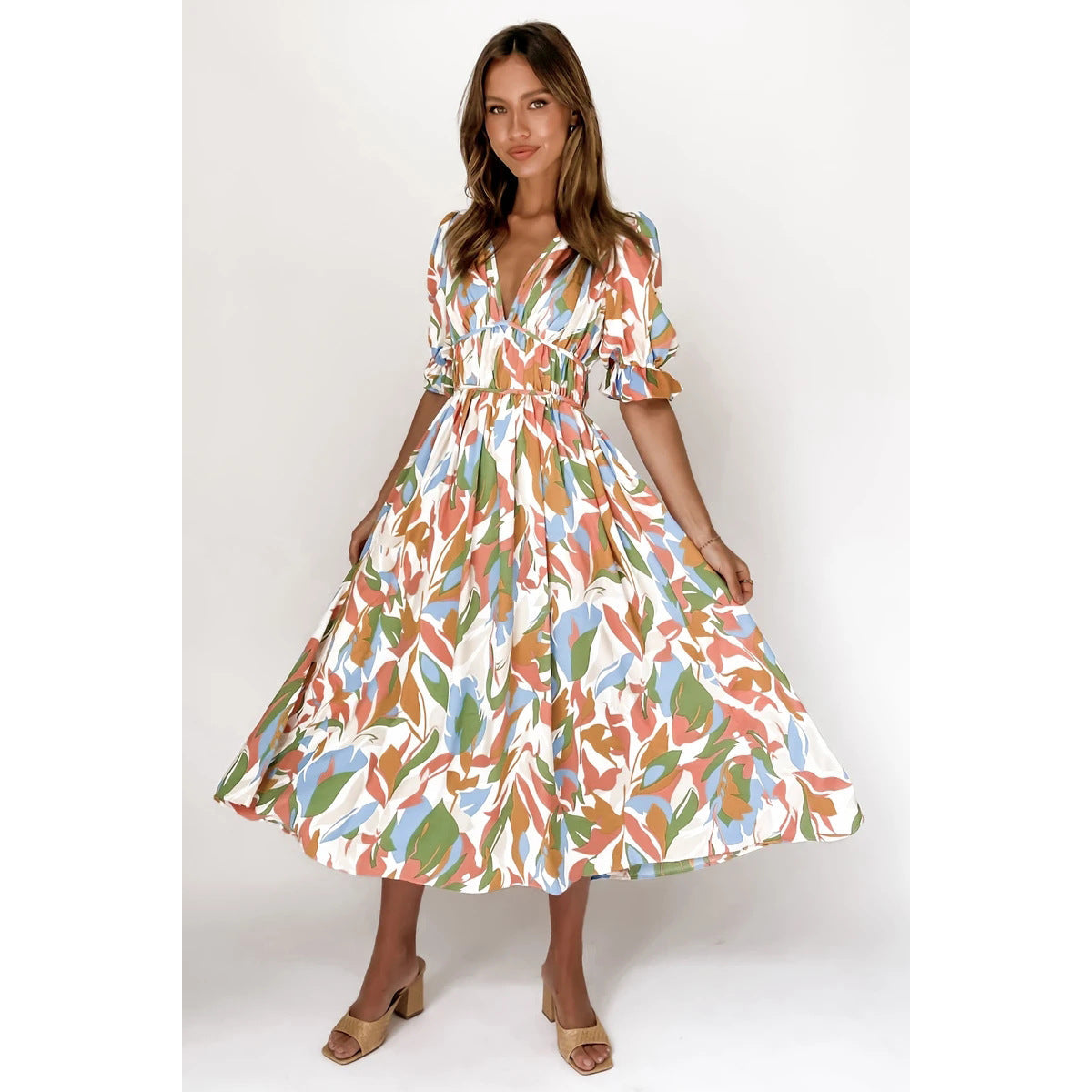 Digital Floral Print Fresh Sweet Mid-Length Dress