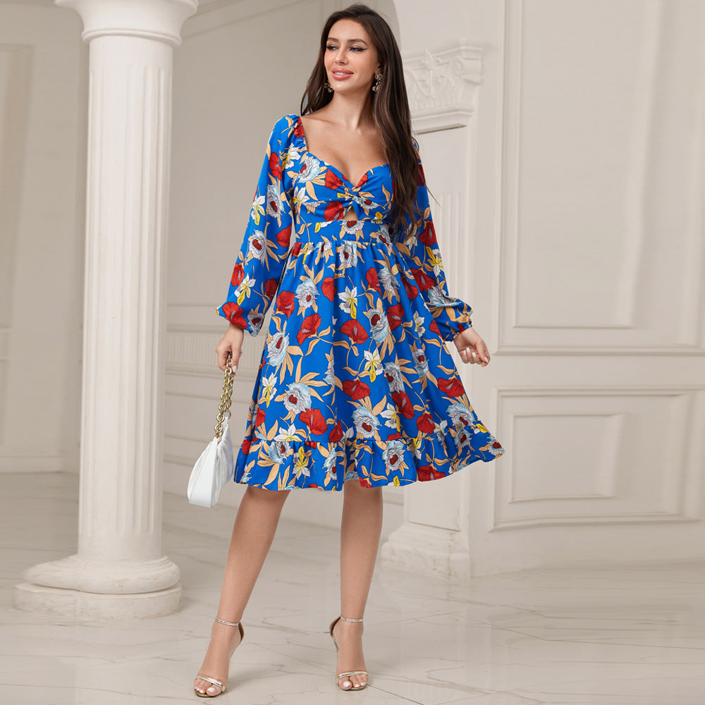 Digital Printed Chiffon High Waist Dress