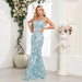 Double V neck Evening Dress Sequined Embroidered Floral Elegant Mermaid Party Maxi Dress