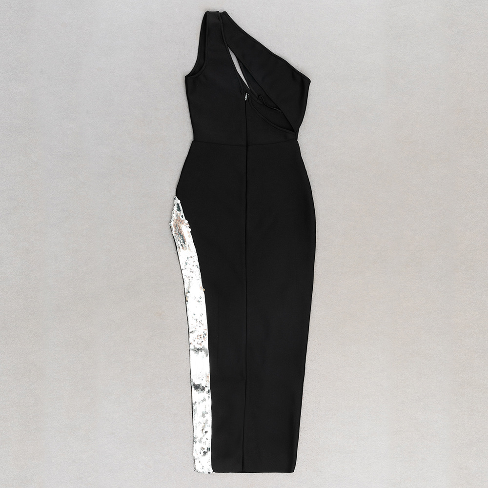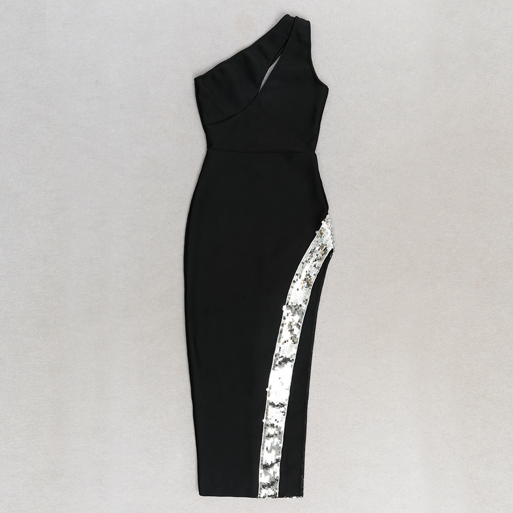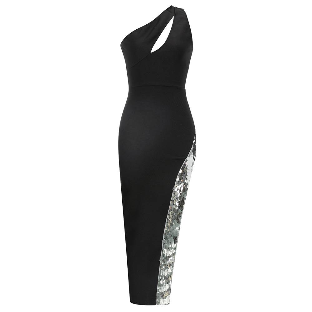 Dress Arrival Simple Hollow Out Cutout out One Shoulder Sequined Side Slit Dress Dinner Dress Slim Fit