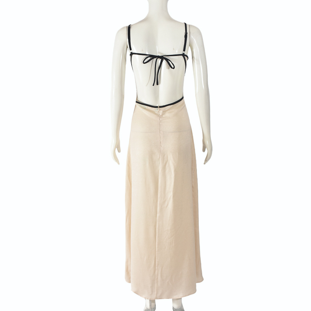 Dress Contrast Color Slim Fit Backless Halterneck with Suspenders Hip Dress