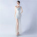 Dress Heavy Industry Beads Single Shoulder Diagonal Collar High Fork Sequined Dinner Dress