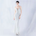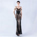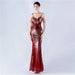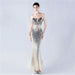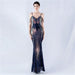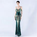 Dress Positioning Floral Sequin Craft Beaded Strap Evening Dress