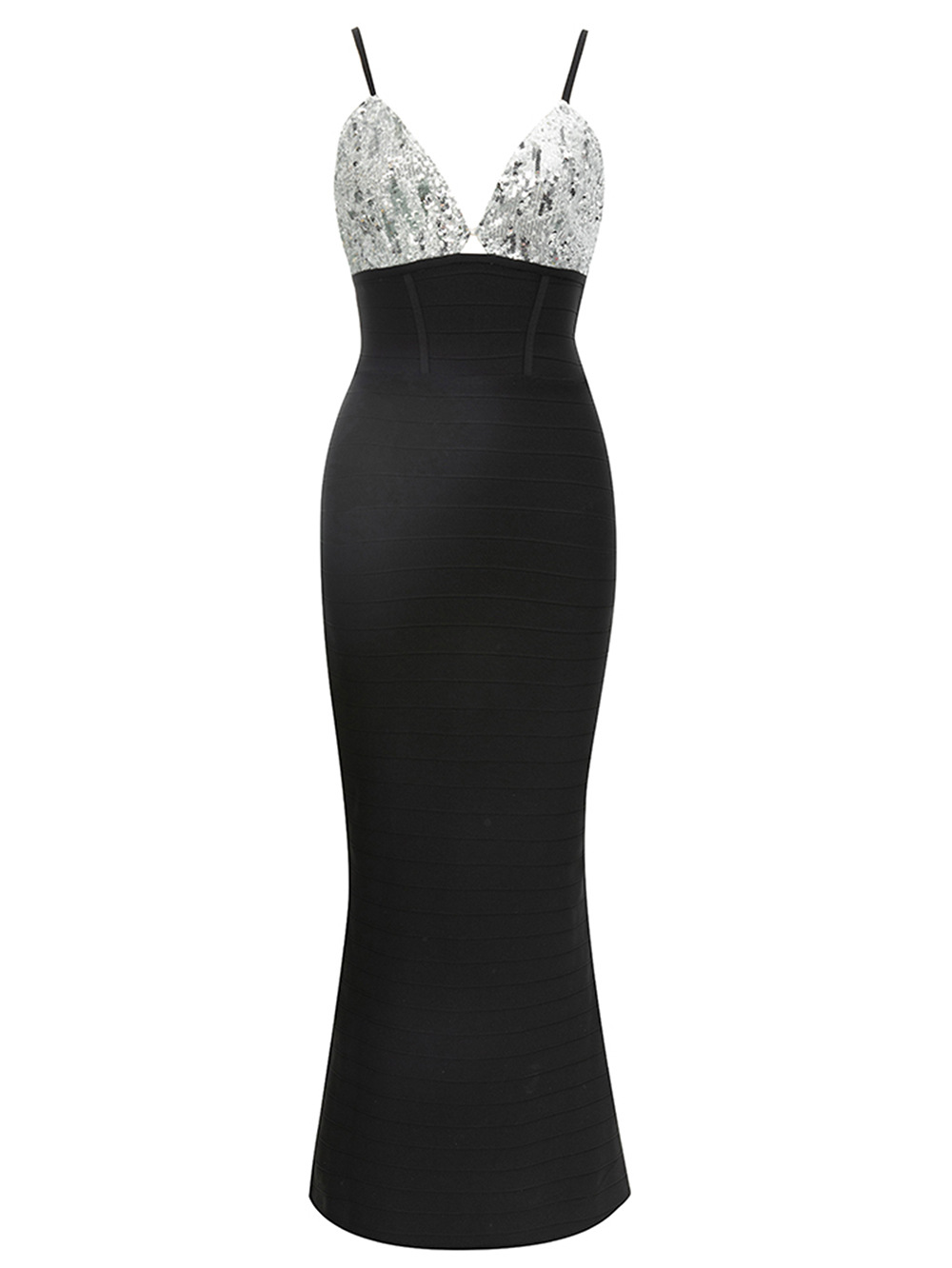Dress Simple Splicing Sling Sheath Dress Heavy Work