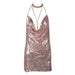 Dress Sleeveless Deep V Plunge Neck Backless Metal Sequ Short Dress