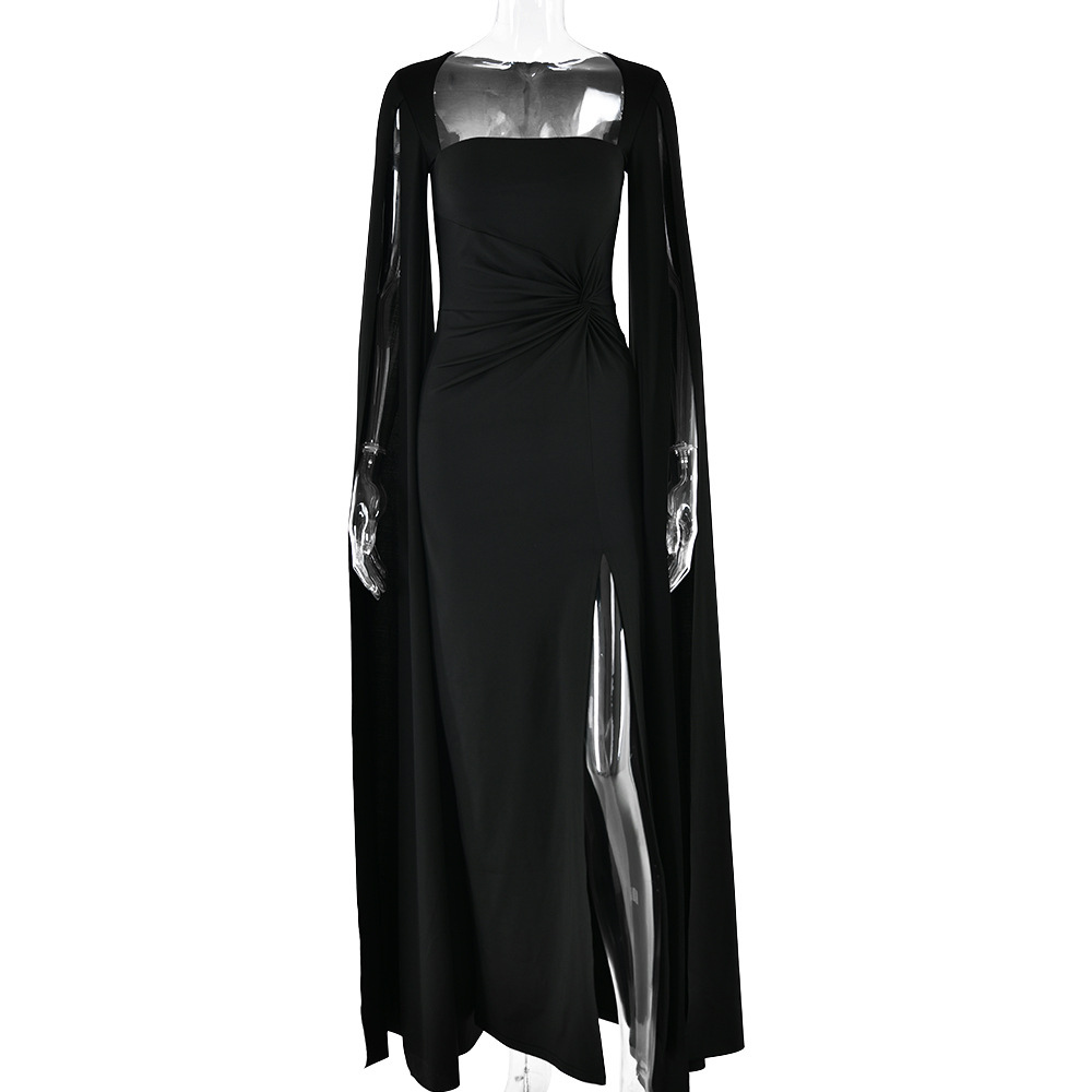 Dress Square Collar Mop Long Sleeve High Slit Solid Color Dress