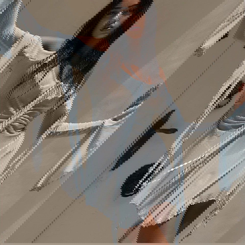 Dress Straps Tulle Sheer Long Sleeve Slim Fit Dress
