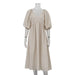 Early Cotton Solid Color Maxi Dress V neck Half Sleeve Hollow Out Cutout Backless Casual Dress