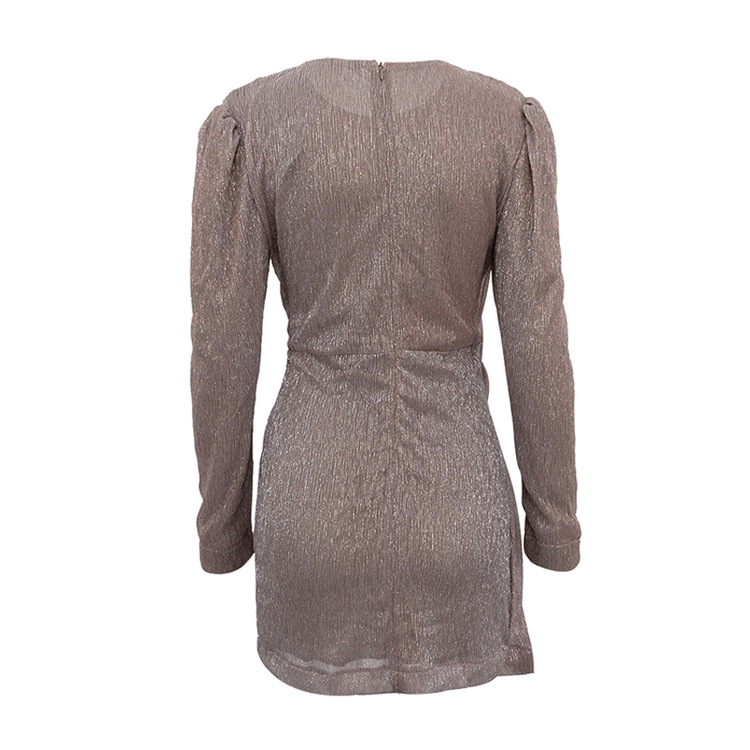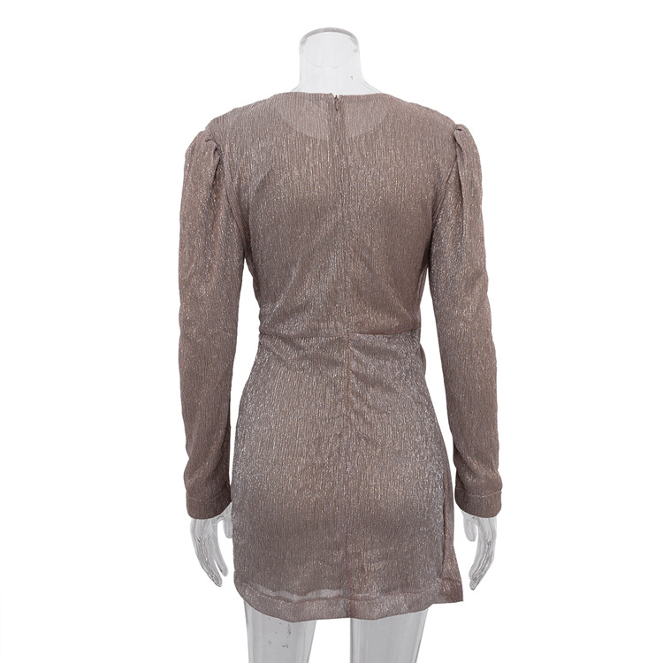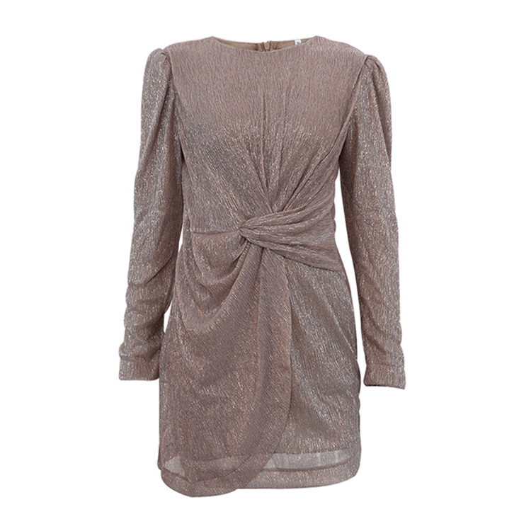 Early Long Sleeve round Neck Twisted Waist Design Dress Hip Dress