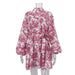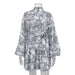 Early National Ink Printing Short Dress Puff Sleeve StUp Collar Tie Retro A Line Dress