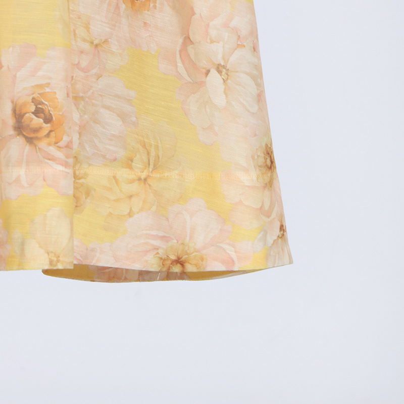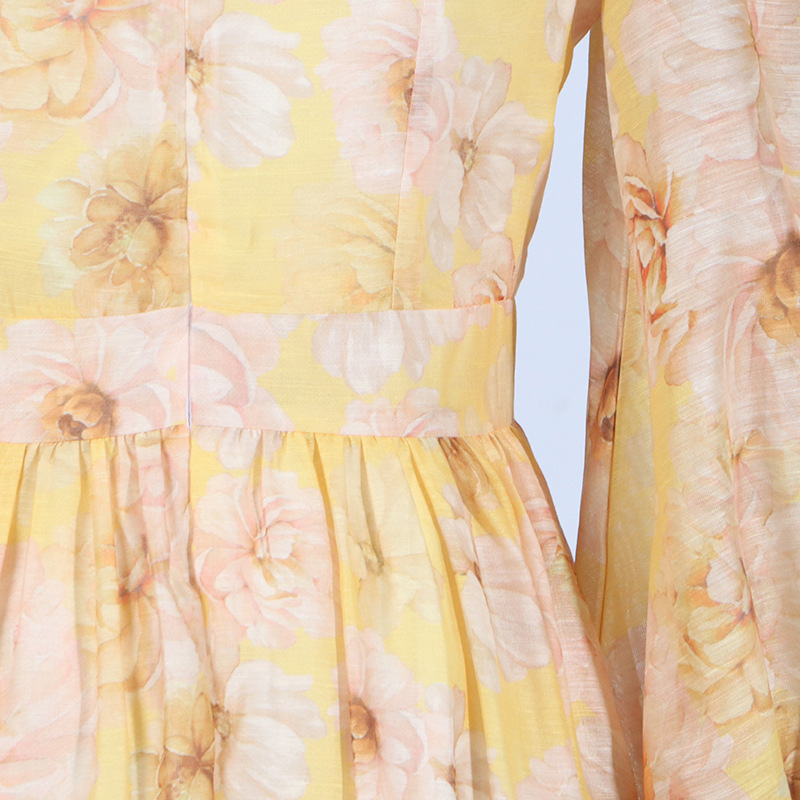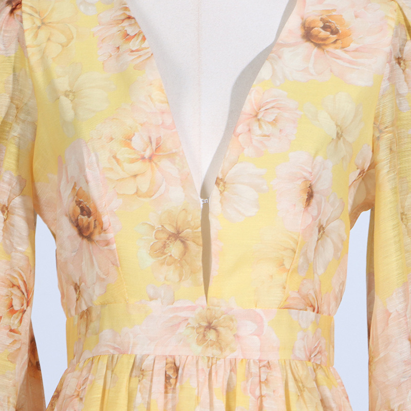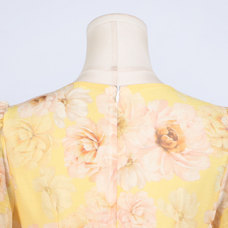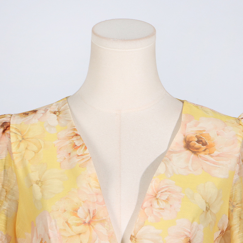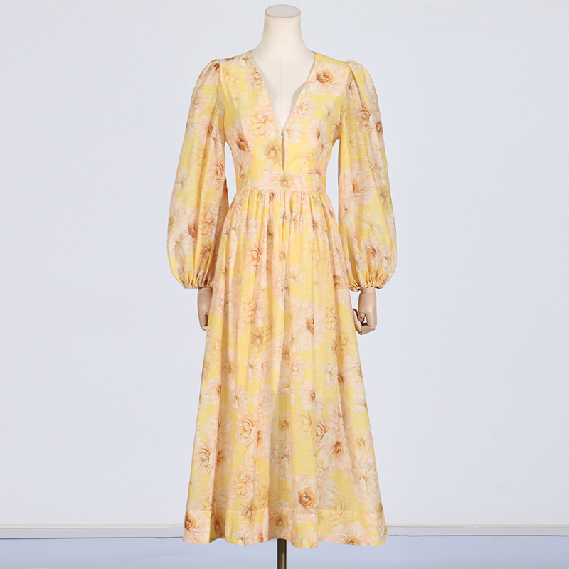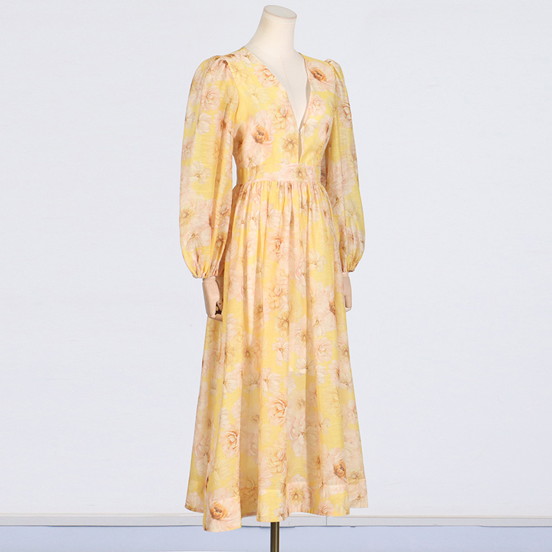 Elegant Dress Lantern Sleeve Printed High Waist Slim Fit