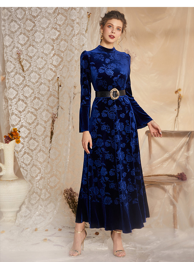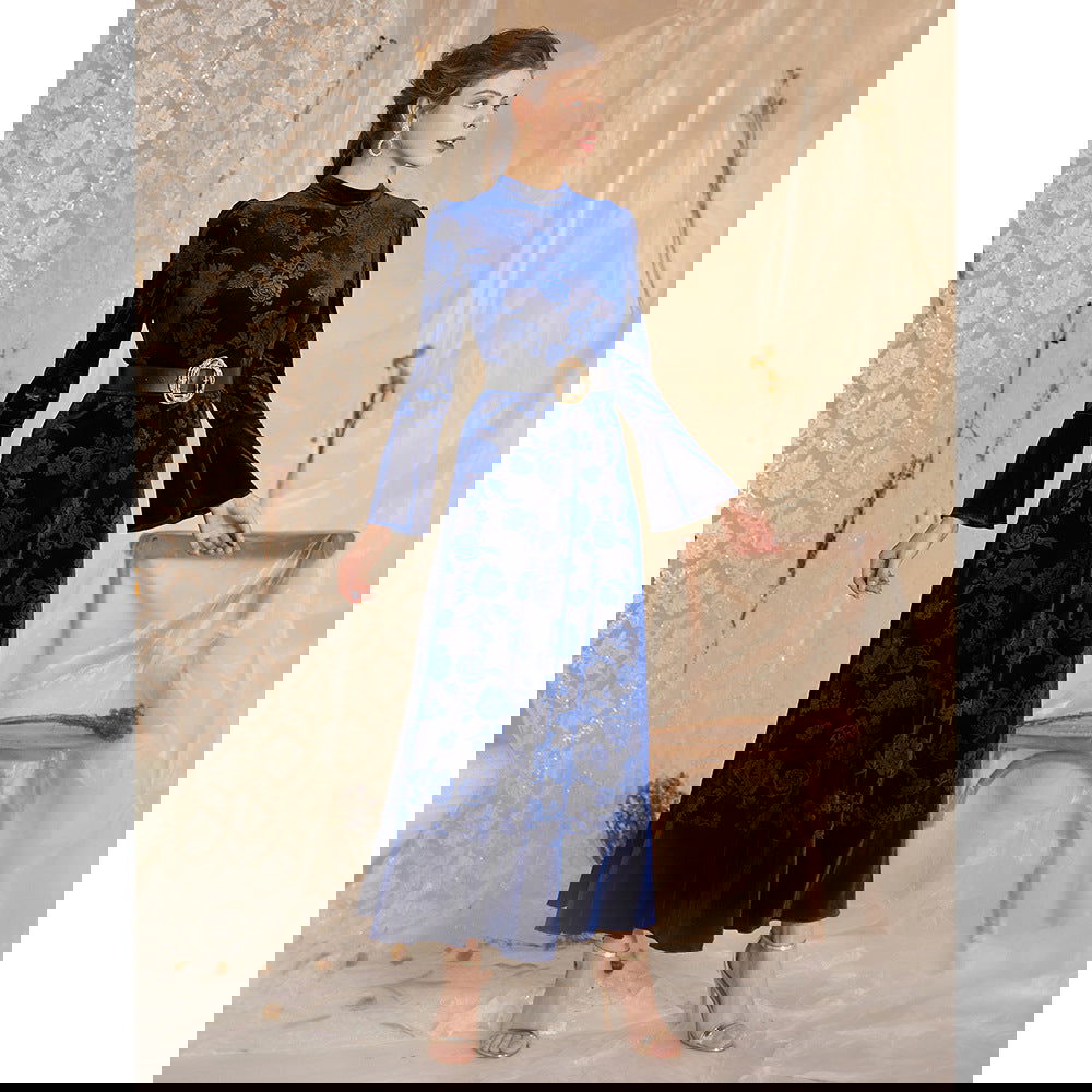 Elegant Fluffy Pattern Lace Long Sleeved Dress