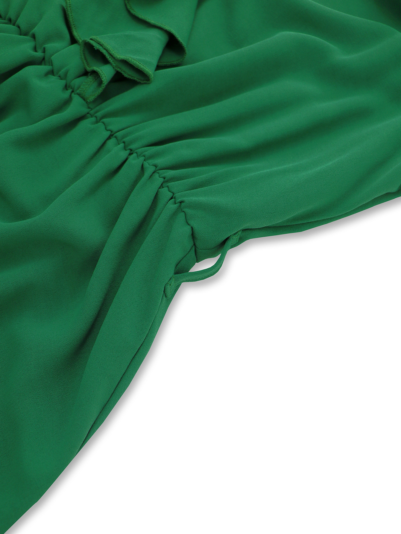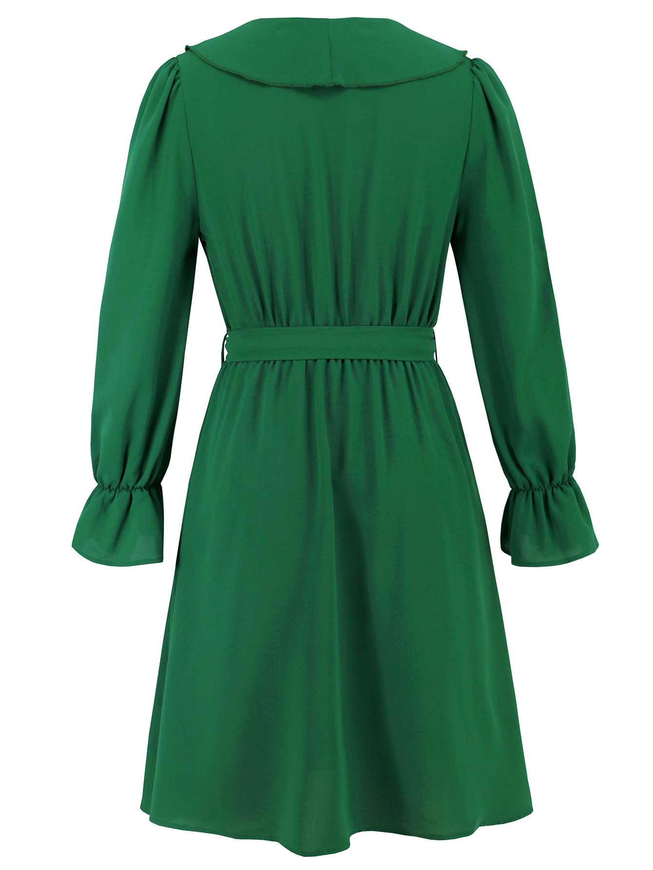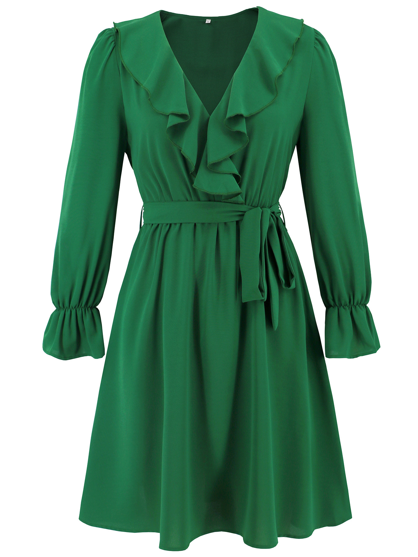 Elegant Graceful Lotus Leaf V Neck Long Sleeve Dress