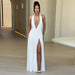 Elegant Halter V neck Dress Slit Pleated Backless Dress