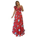Elegant Print High Waist Maxi Dress Suspender Dress