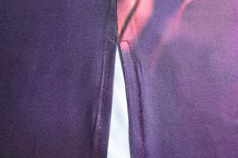Elegant Printed Long Sleeve Slim Fit One Step Dress Split round Neck Maxi Dress