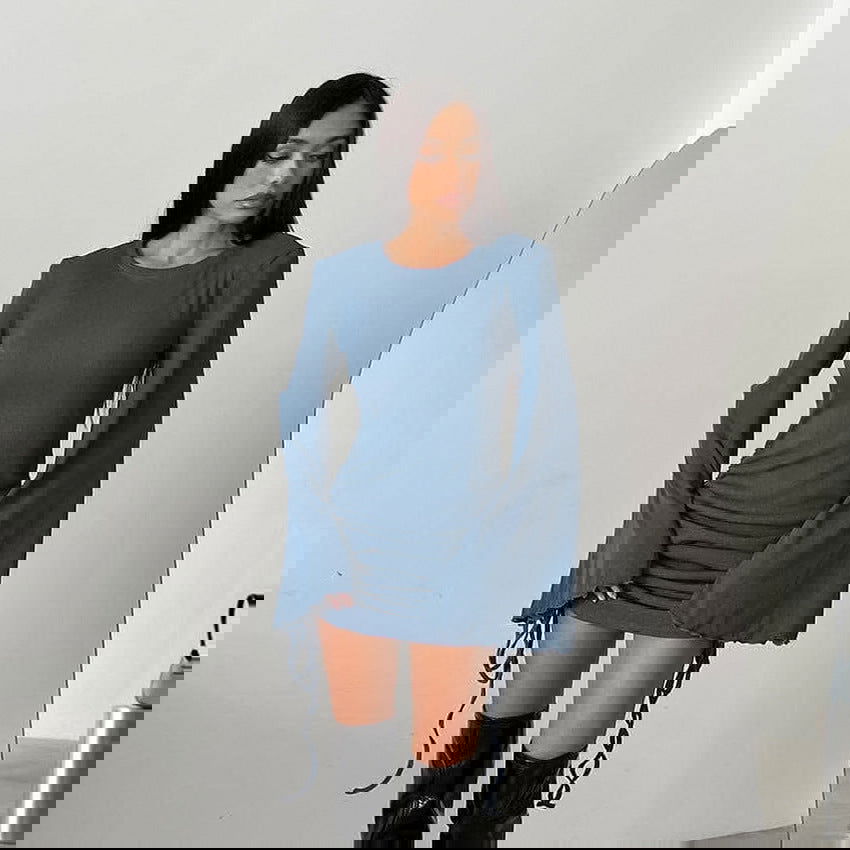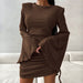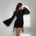 Elegant Round Neck Flared Sleeves Tight Lace Up Dress Knitted Solid Color Dress