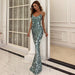 Elegant Sequined Evening Dress for Geometric Abstract Pattern Strap Dress for Prom Formal Gown