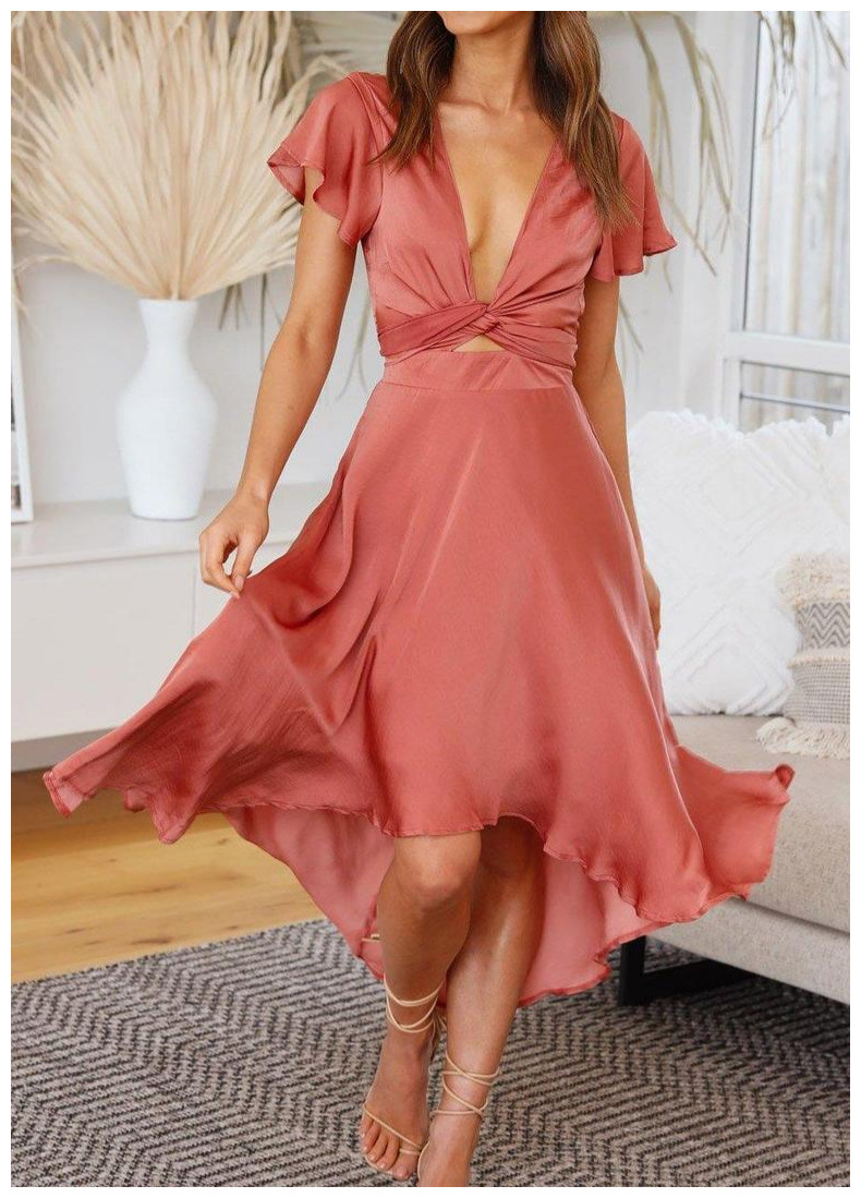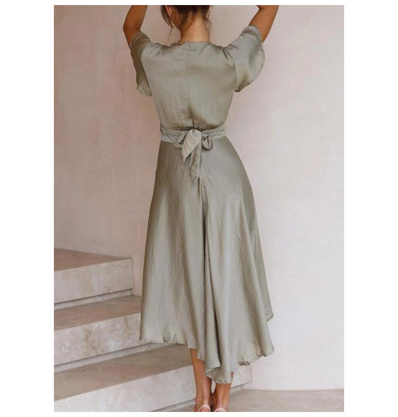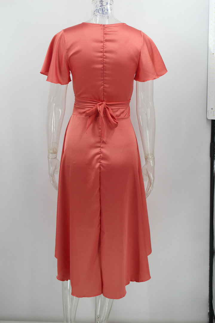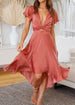 Elegant Short Sleeve V-neck Asymmetric Dress