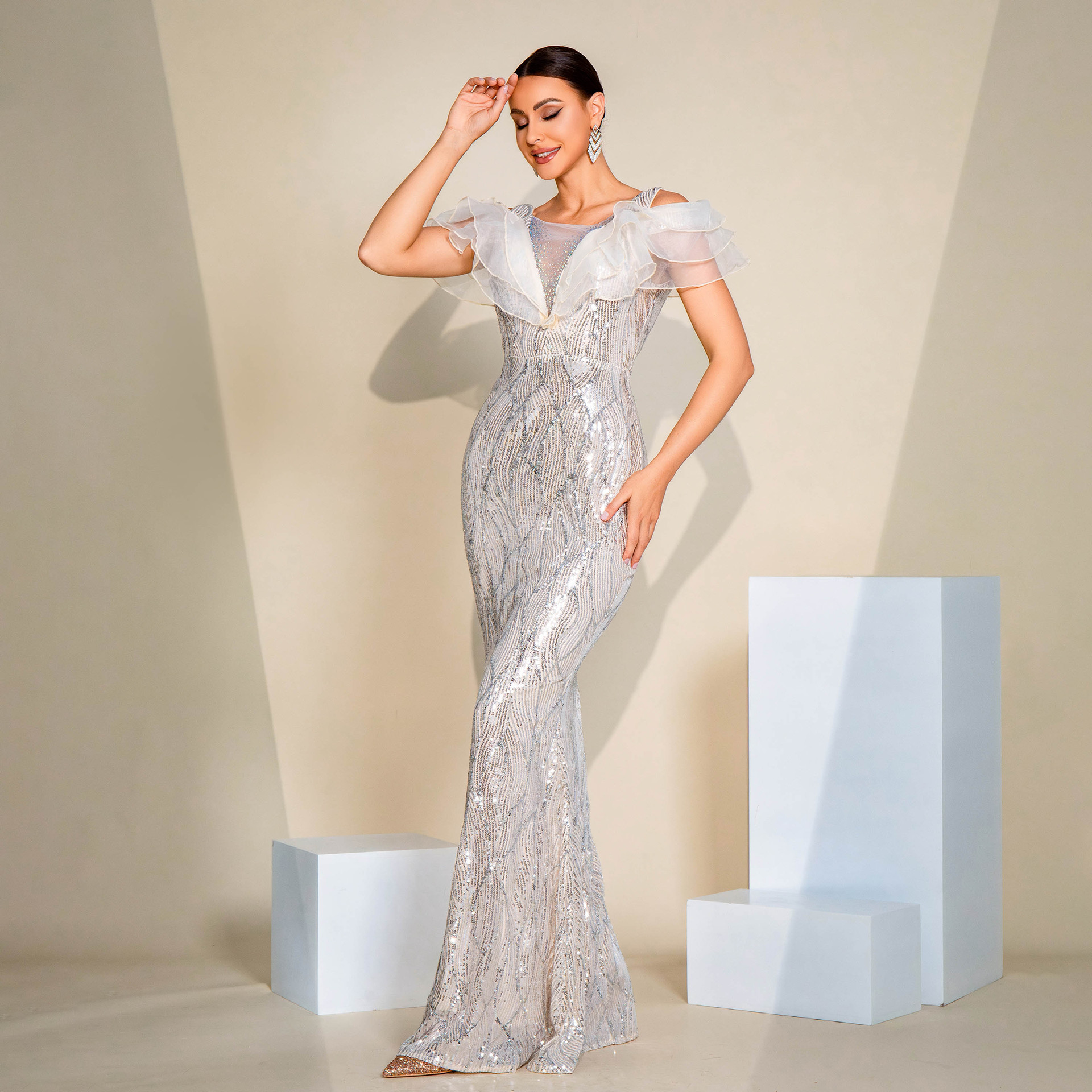 Elegant Sleeveless round Neck Sequ Cocktail Evening Dress Bridesmaid