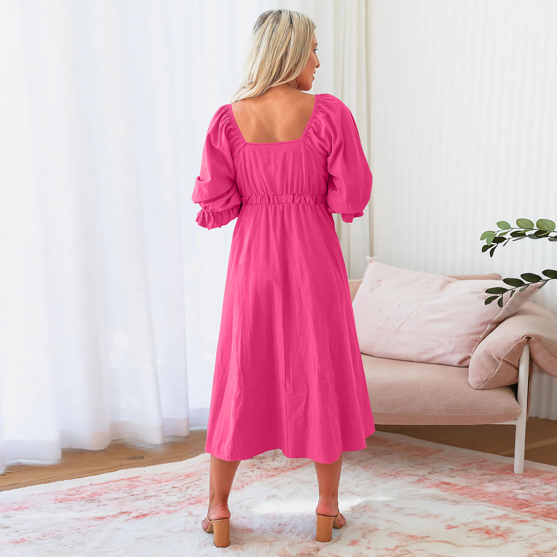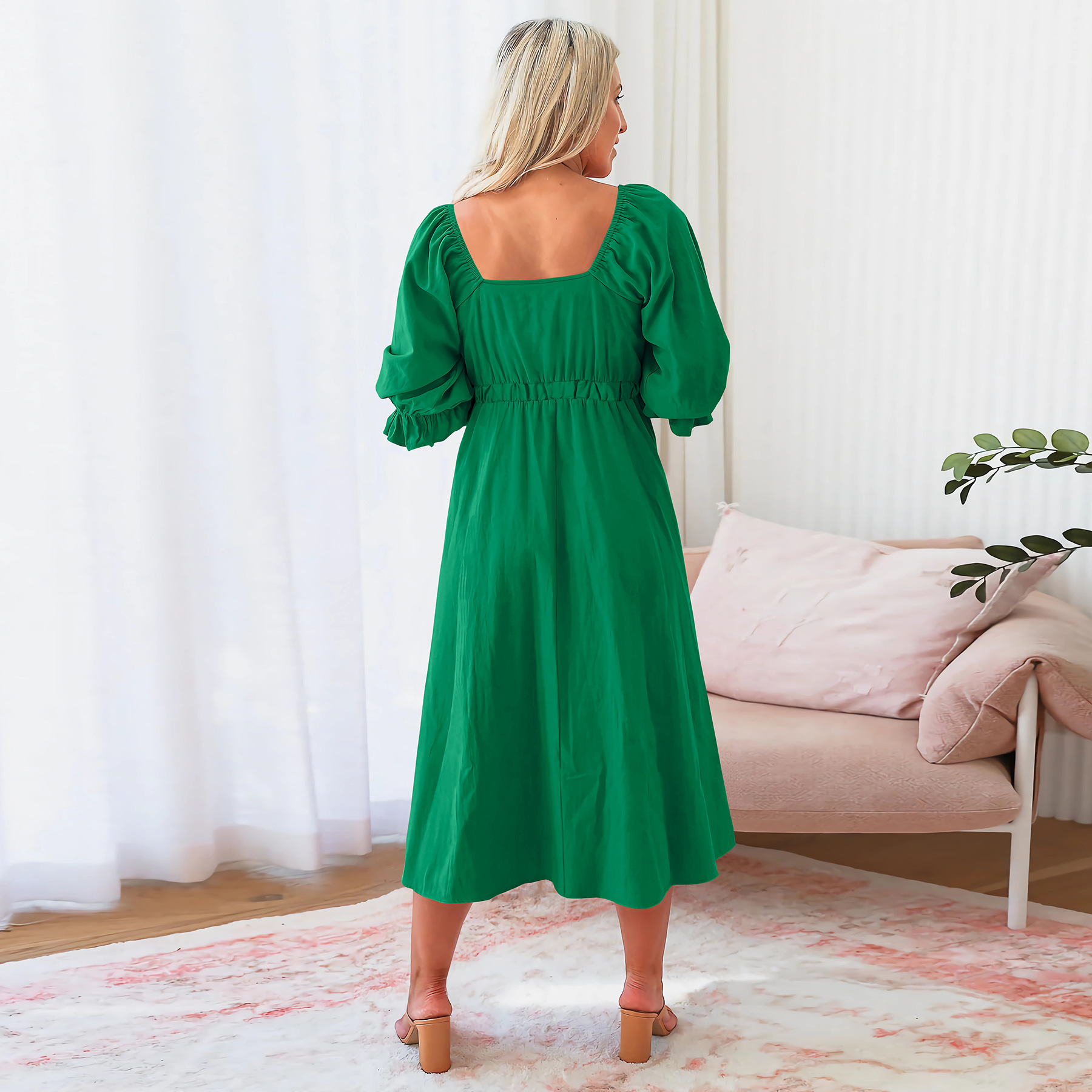 Elegant Slim Lantern Sleeve Dress Mid Length Dress