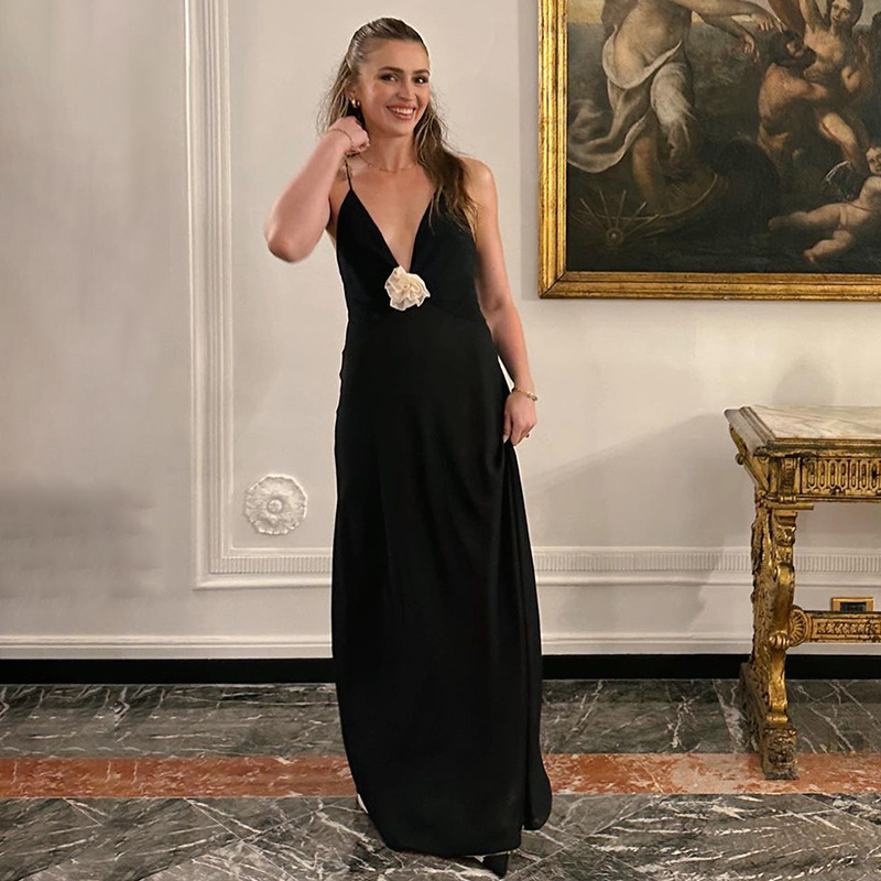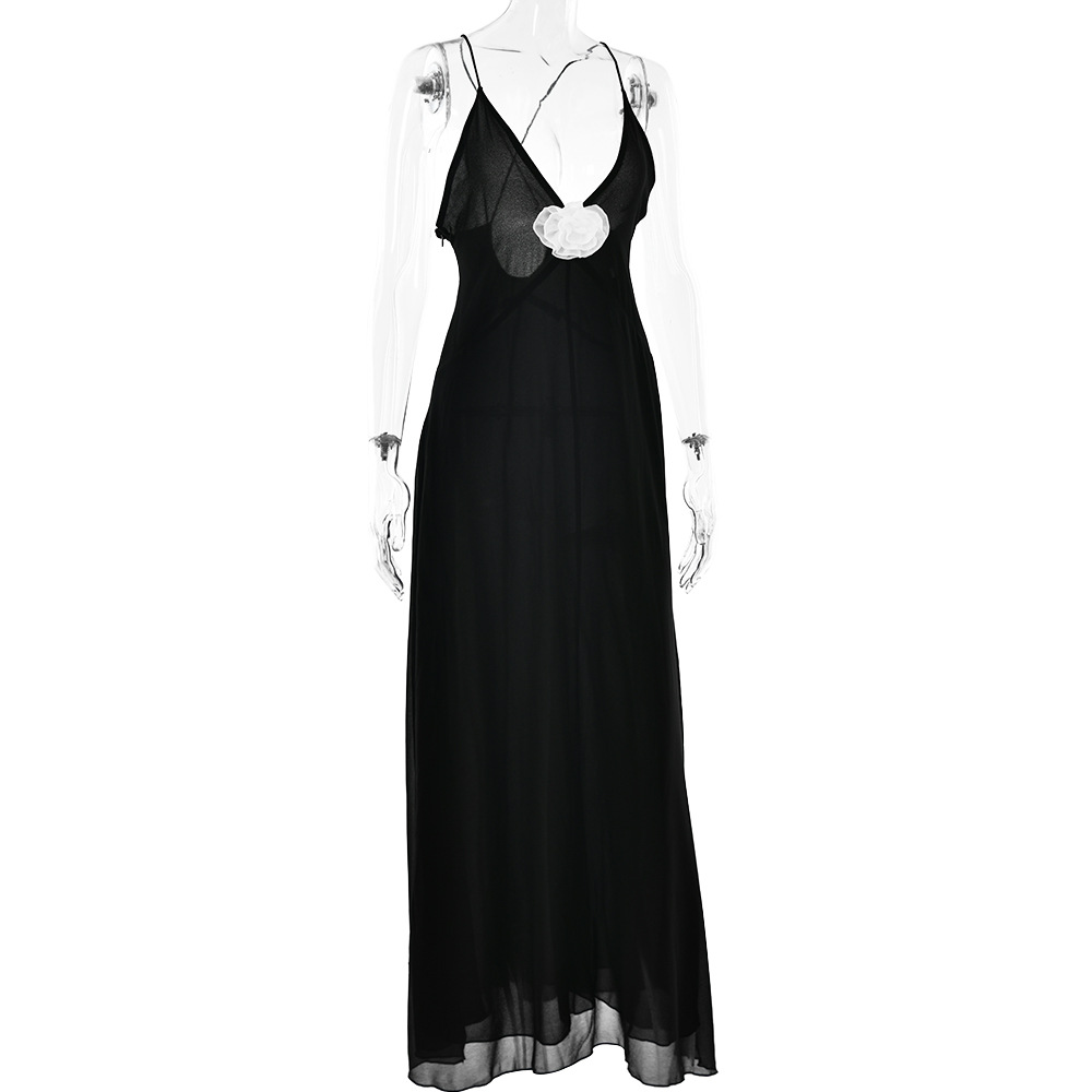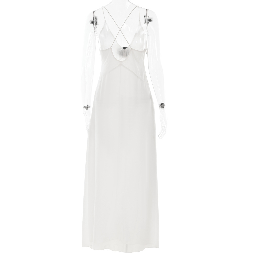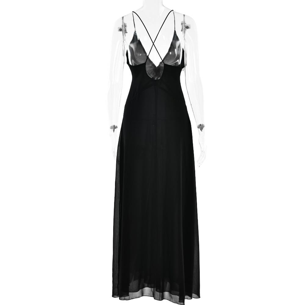 Elegant V neck Stitched Backless Chiffon Strap Maxi Dress