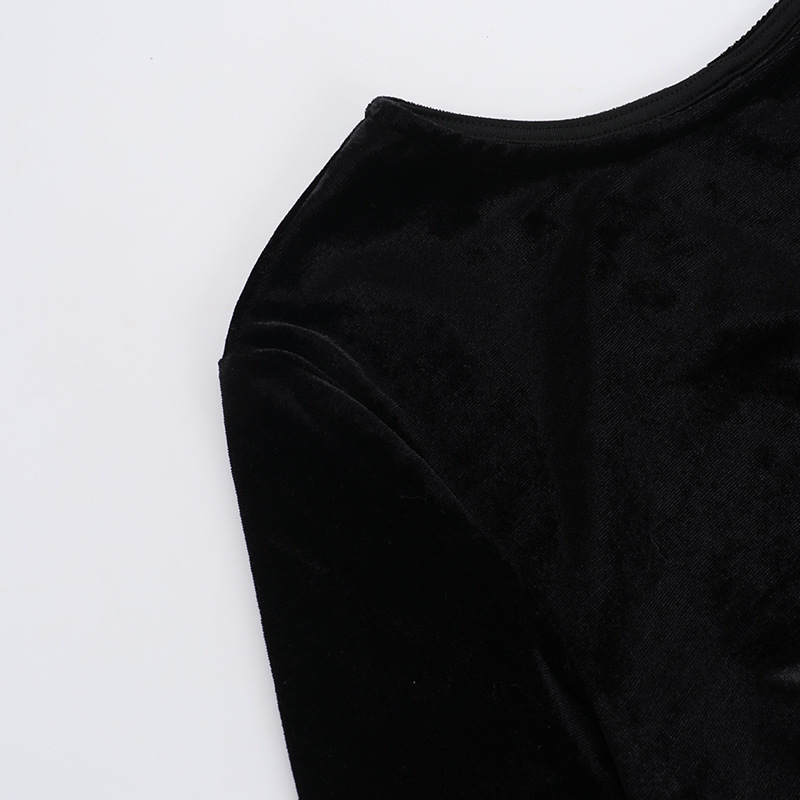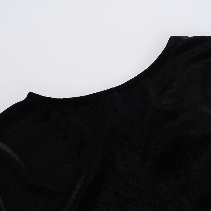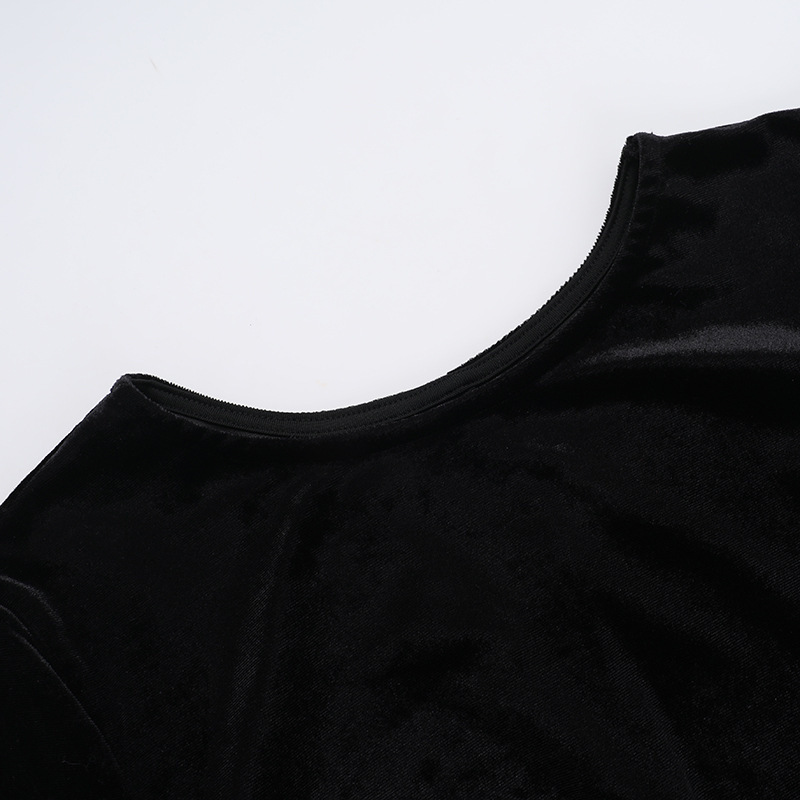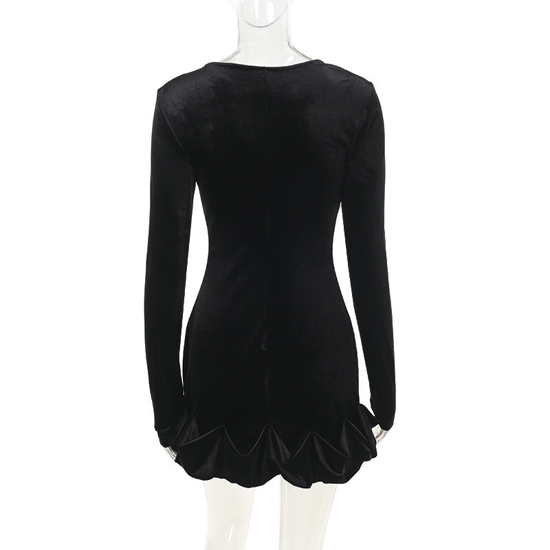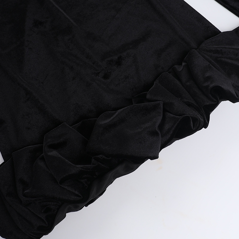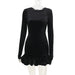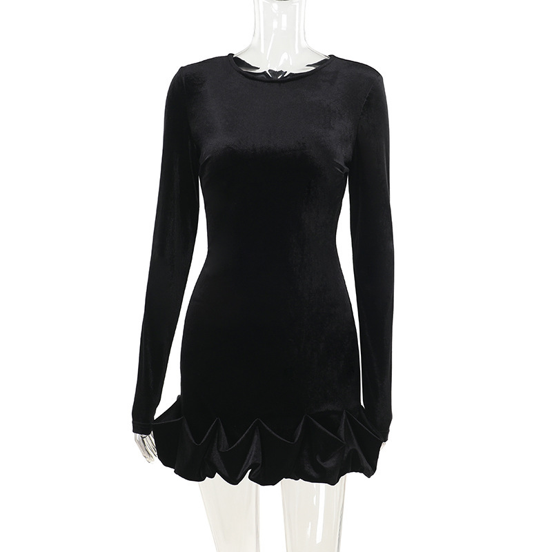 Elegant Velvet Round Neck Three Dimensional Pleated Hem Long Sleeve