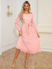Elegant Waist Crew Neck Jacquard Long Sleeve Dress Mid Length Dress Popular
