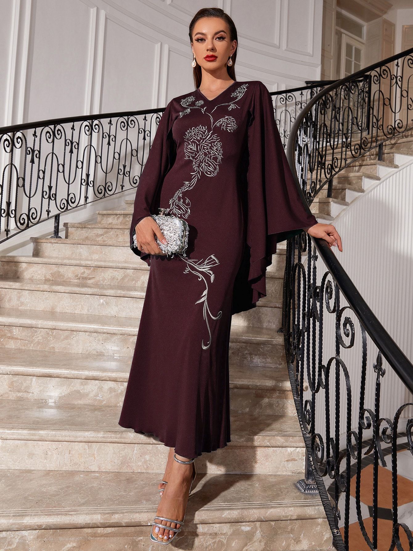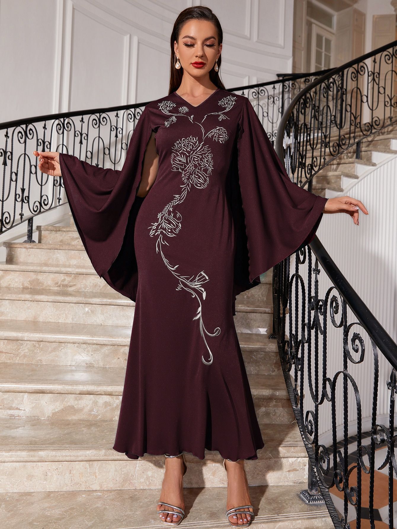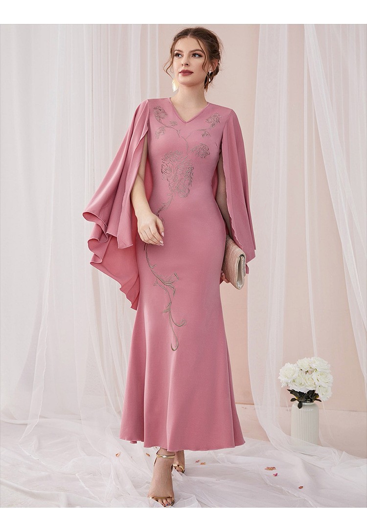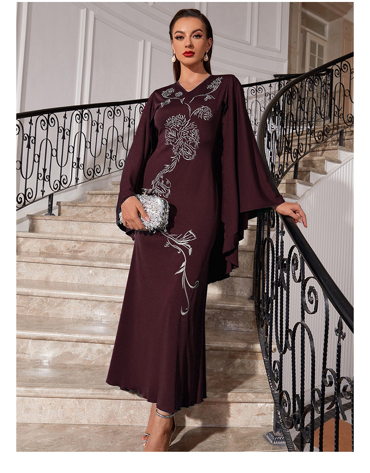 Embroidered Dress V Neck Batwing Sleeve Dress Urban Dress