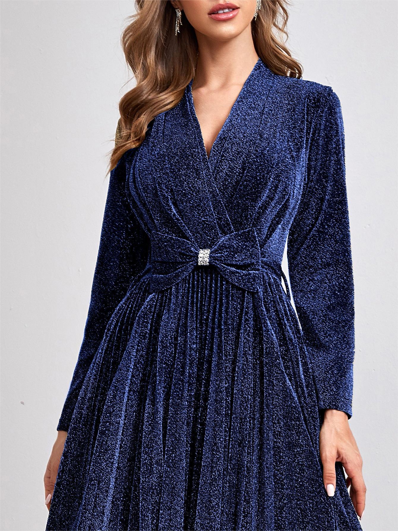 V neck Long Sleeve Big Hem Elegant Bridesmaid Dress