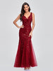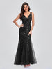 Evening Dress V neck Tulle Embroidered Sequ Mermaid Prom Formal Dress