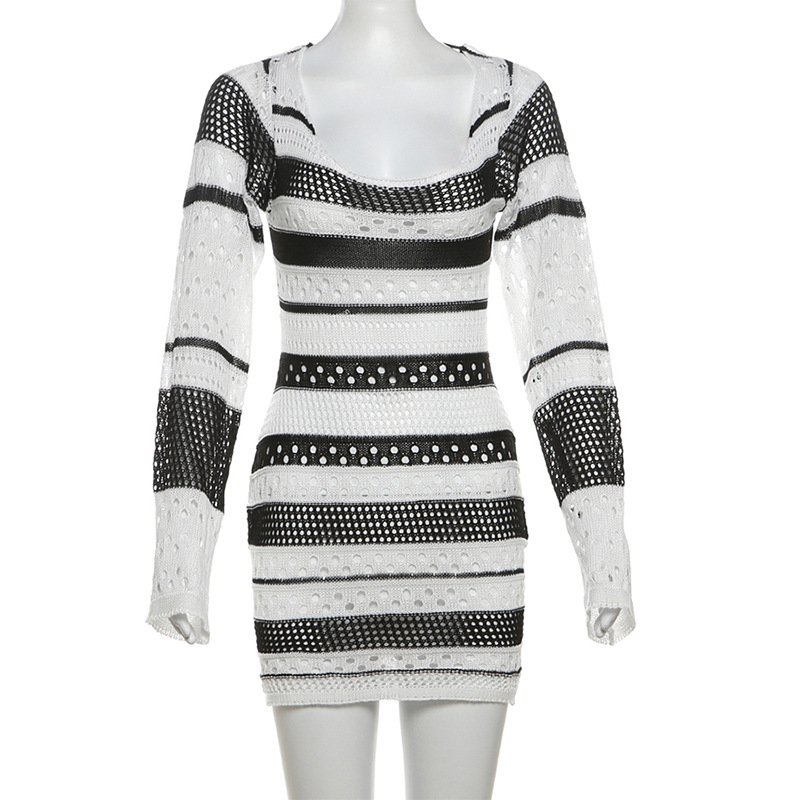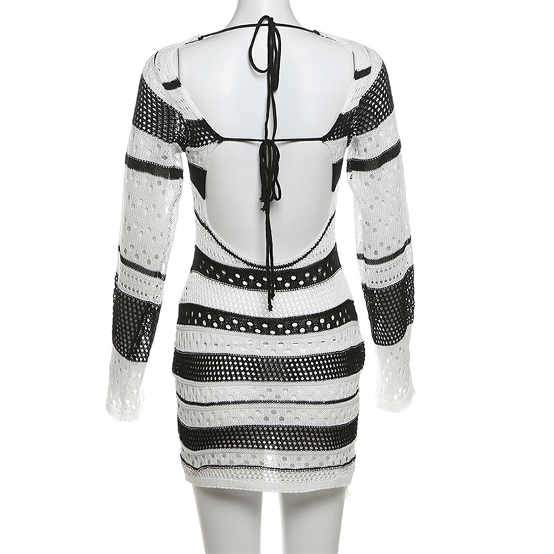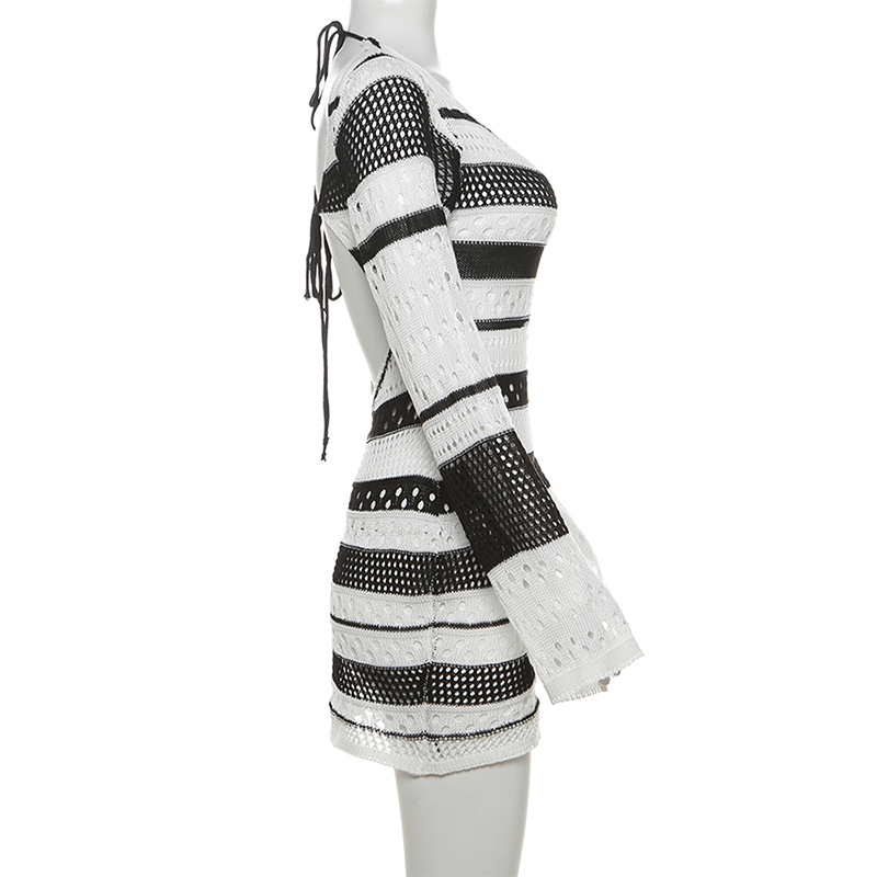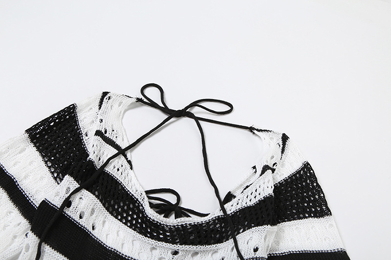 Fall Hollow Out Cutout out Backless Lace up Knitted Striped