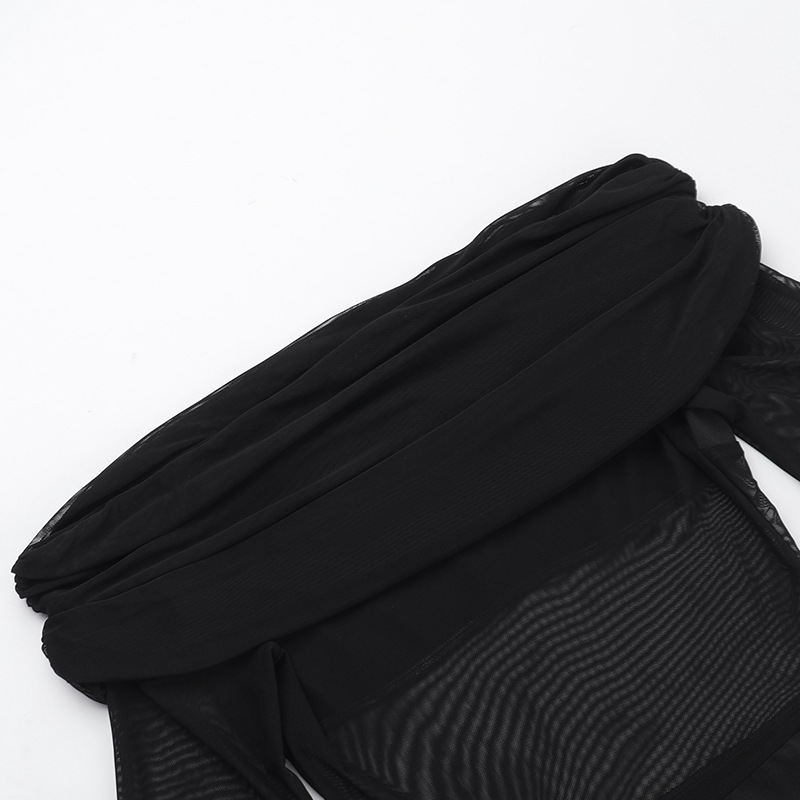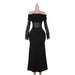 Fall Maxi Dress Elegant Slim off Shoulder Mesh