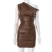Faux Leather Stitching Diagonal Collar Twisted Pleated Sheath Dress