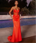 Fishbone Satin Beadwork Split Ball Gown Customized