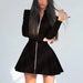 Fashionable Fitted Long Sleeve Pleated Faux Leather Zipper Dress