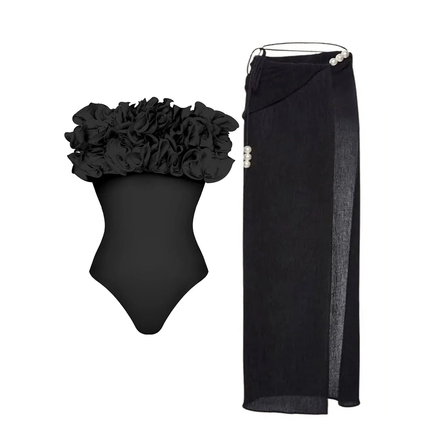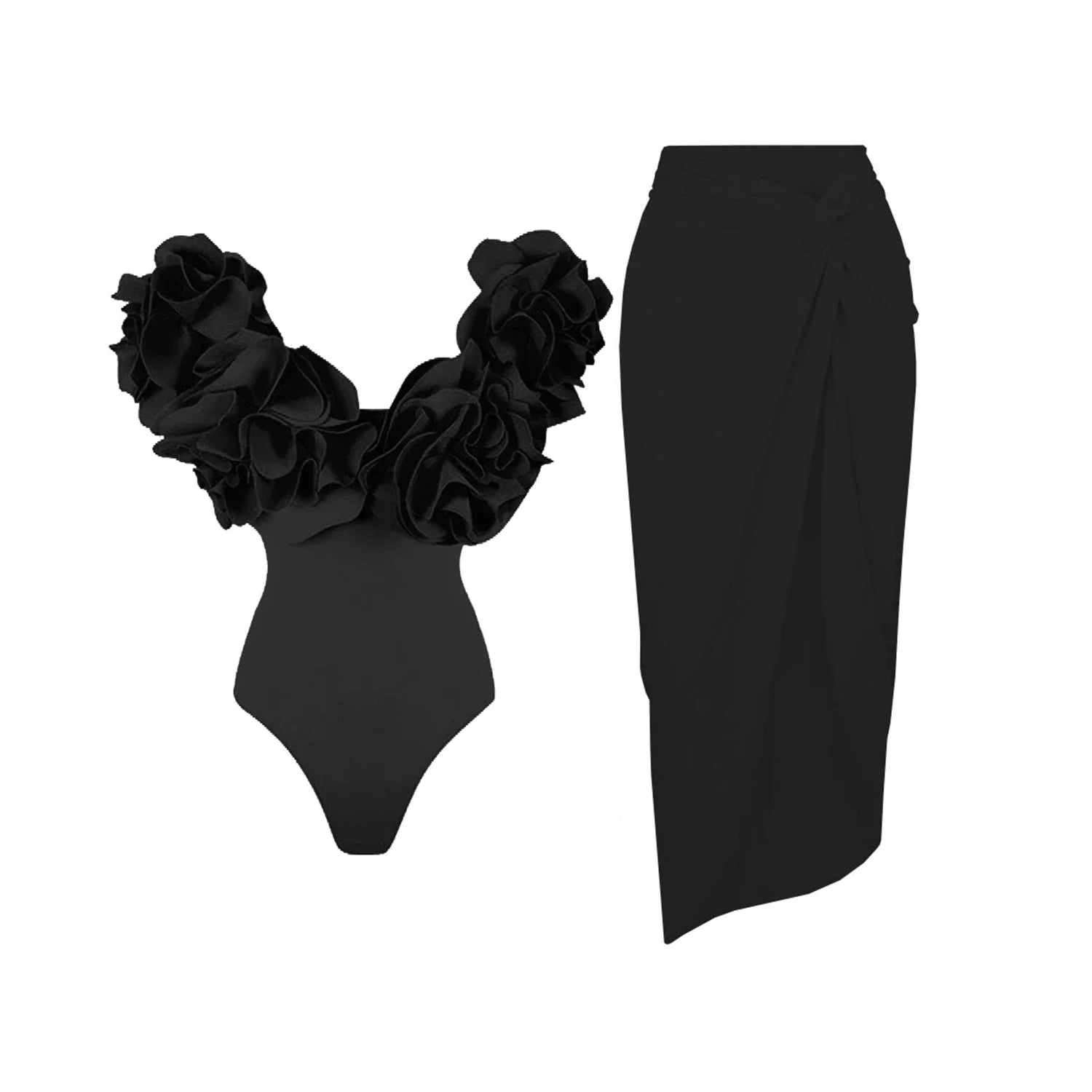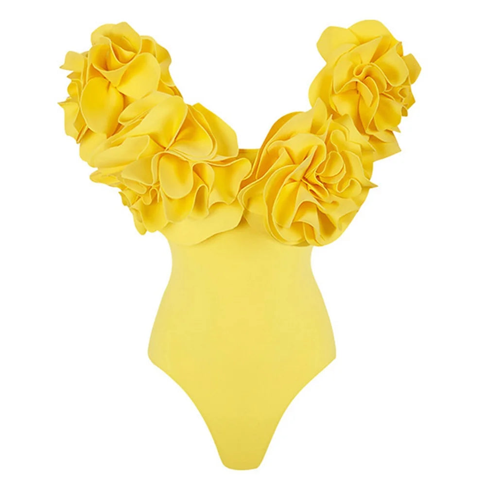 Flower Ruffle Push-Up Off-Shoulder Swimwear Set