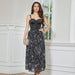 French Chiffon Sling Boning Corset Dress Fixed Cup Printed Elegant High Grade Waist Tight Dress