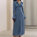 French Imitation Acetate Satin V neck Flared Sleeves High Waist Ruffles Dress Autumn