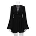 French Puff Sleeve High Waist Dress V Neck Abdomen Control Black Short Dress