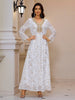 Gold Pattern Printed Maxi Dress Patchwork Knitted Belt Long Sleeve Dress