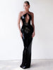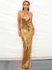 Gold Sequin Spaghetti Strap Hollow Long Dress