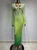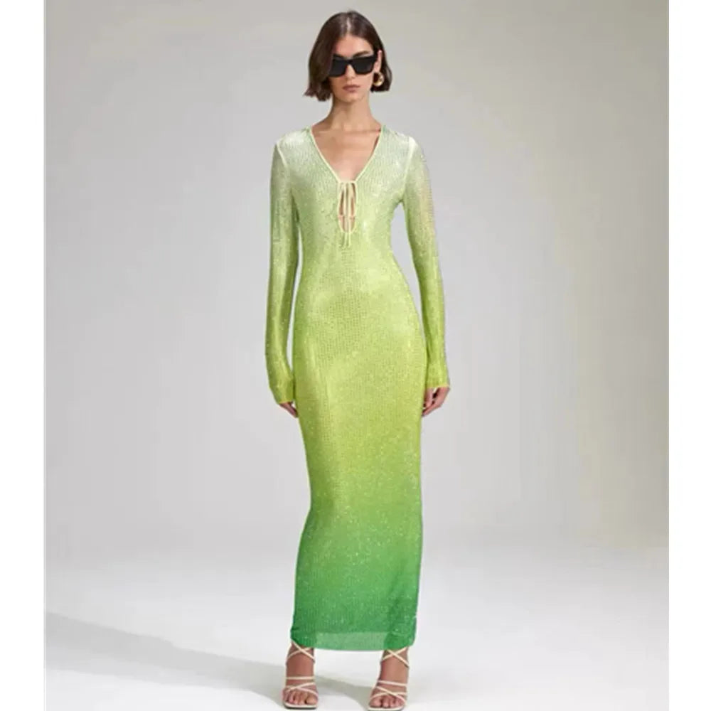 • Item: Green Gradient Rhinestone Long Sleeve Midi Dress