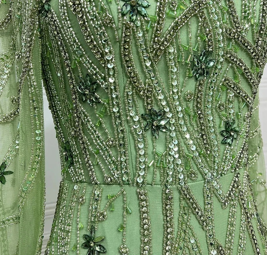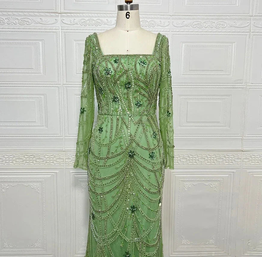 Green Mermaid Beaded Square collar Formal Long Gowns