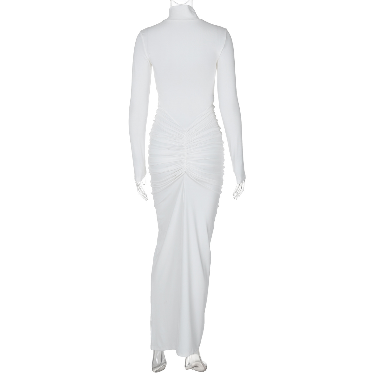 Half High Collar Long Sleeves Slim Fit Fold Split Maxi Dress