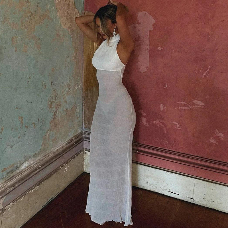 Halter Backless Pleated Ruffle Sleeveless