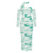 Halter Open Shoulder Printed Lace Fold Midi Dress