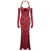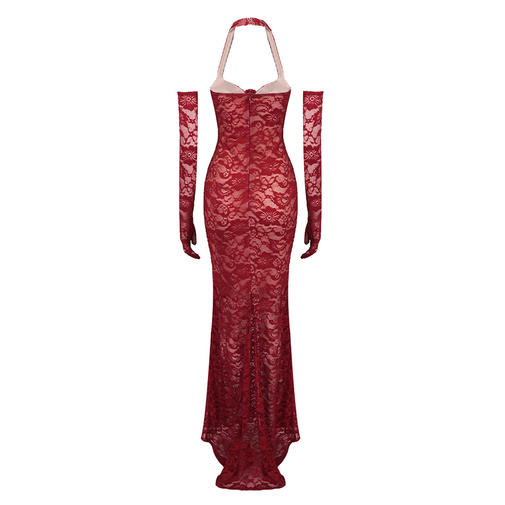 Halterneck with Suspenders Slim Fit Lace Mesh Dress Maxi Dress Evening Dress
