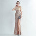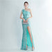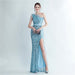 Heavy Industry Ostrich Hair Craft Beading Hair Oblique Shoulder Side Slit High End Evening Dress